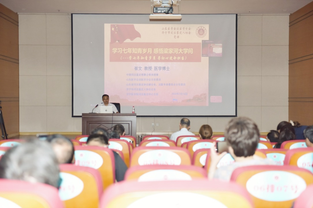 7月16日,山东省医学会法医学分会党建工作小组组长主任委员崔文以《 学七年知青岁月 寻出新使命担当》为题,为法医学分会全体党员讲专题党课。