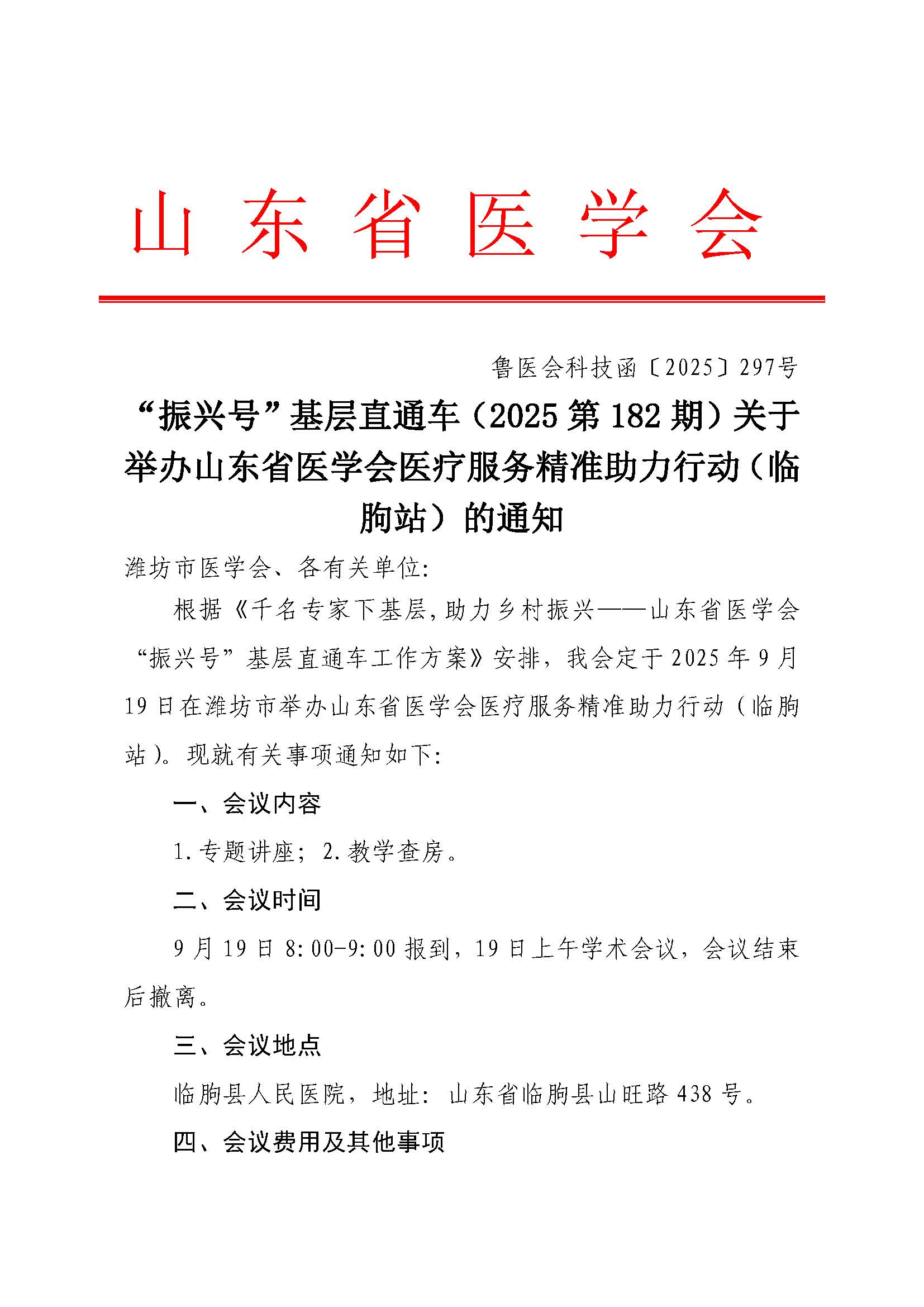 “振兴号”基层直通车(2025第182期)关于举办山东省医学会医疗服务精准助力行动(临沂站)的通知