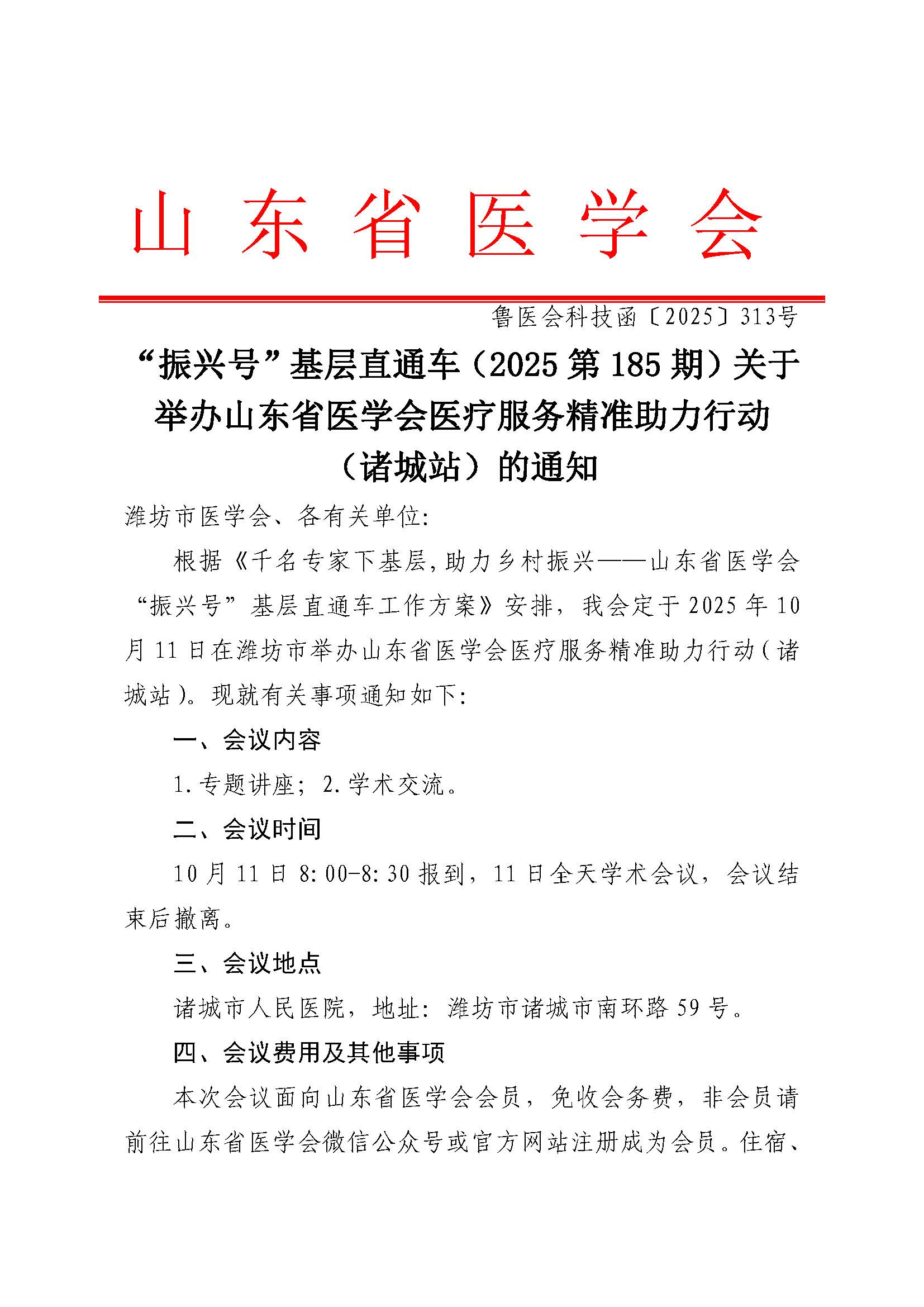 “振兴号”基层直通车(2025第192期)关于举办山东省医学会医疗服务能力提升行动(沾化站)的通知