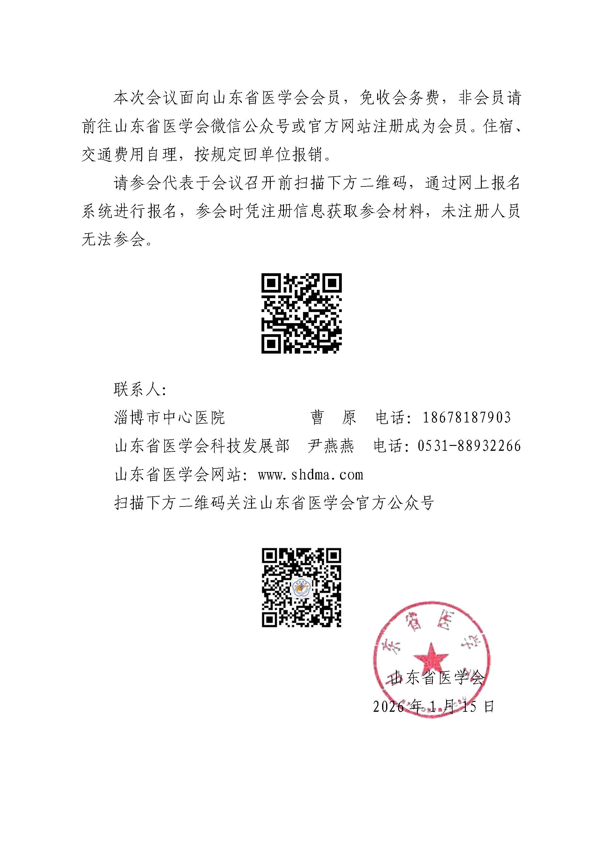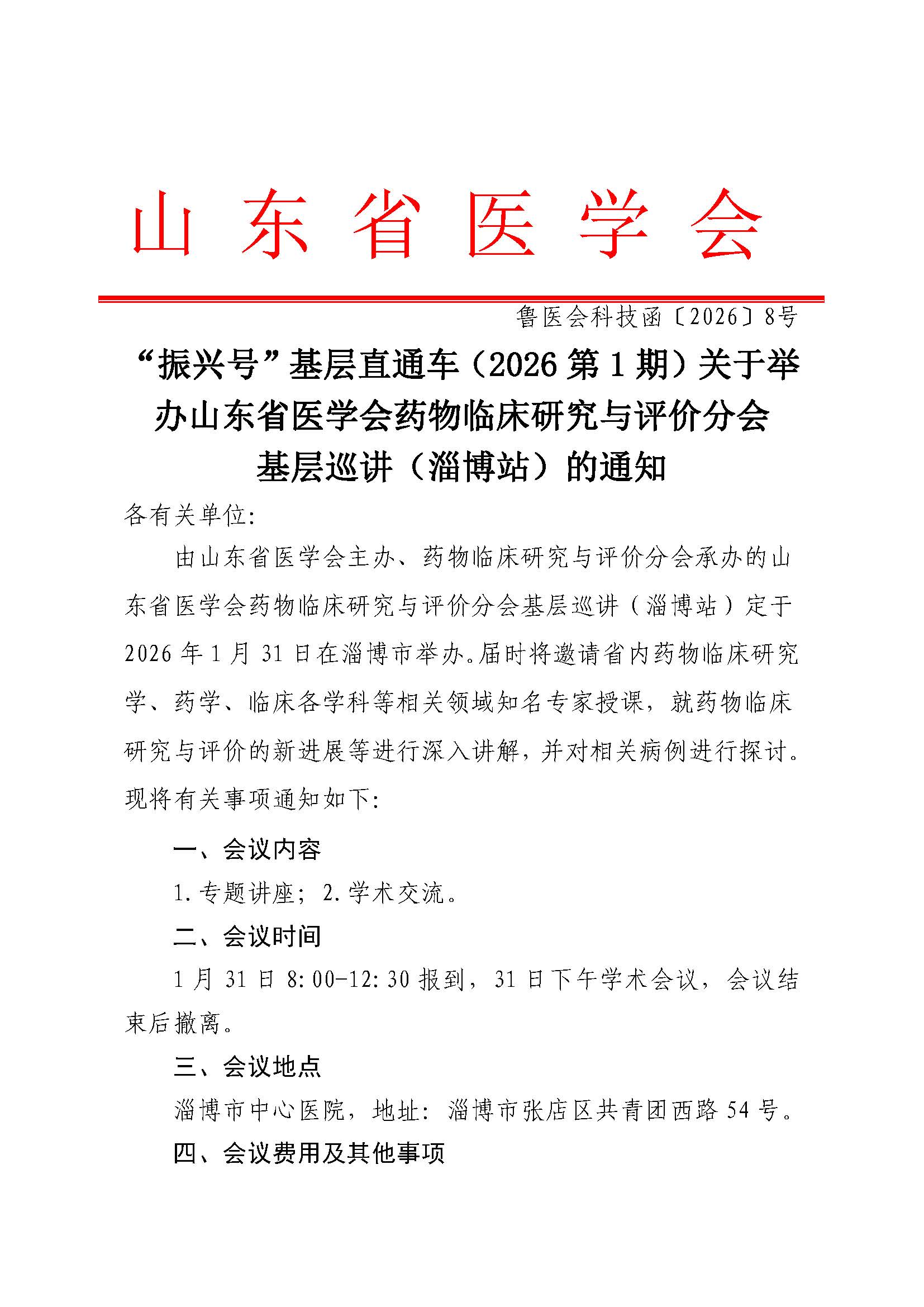 “振兴号”基层直通车(2026第1期)关于举办山东省医学会药物临床研究与评价分会基层巡讲(淄博站)的通知