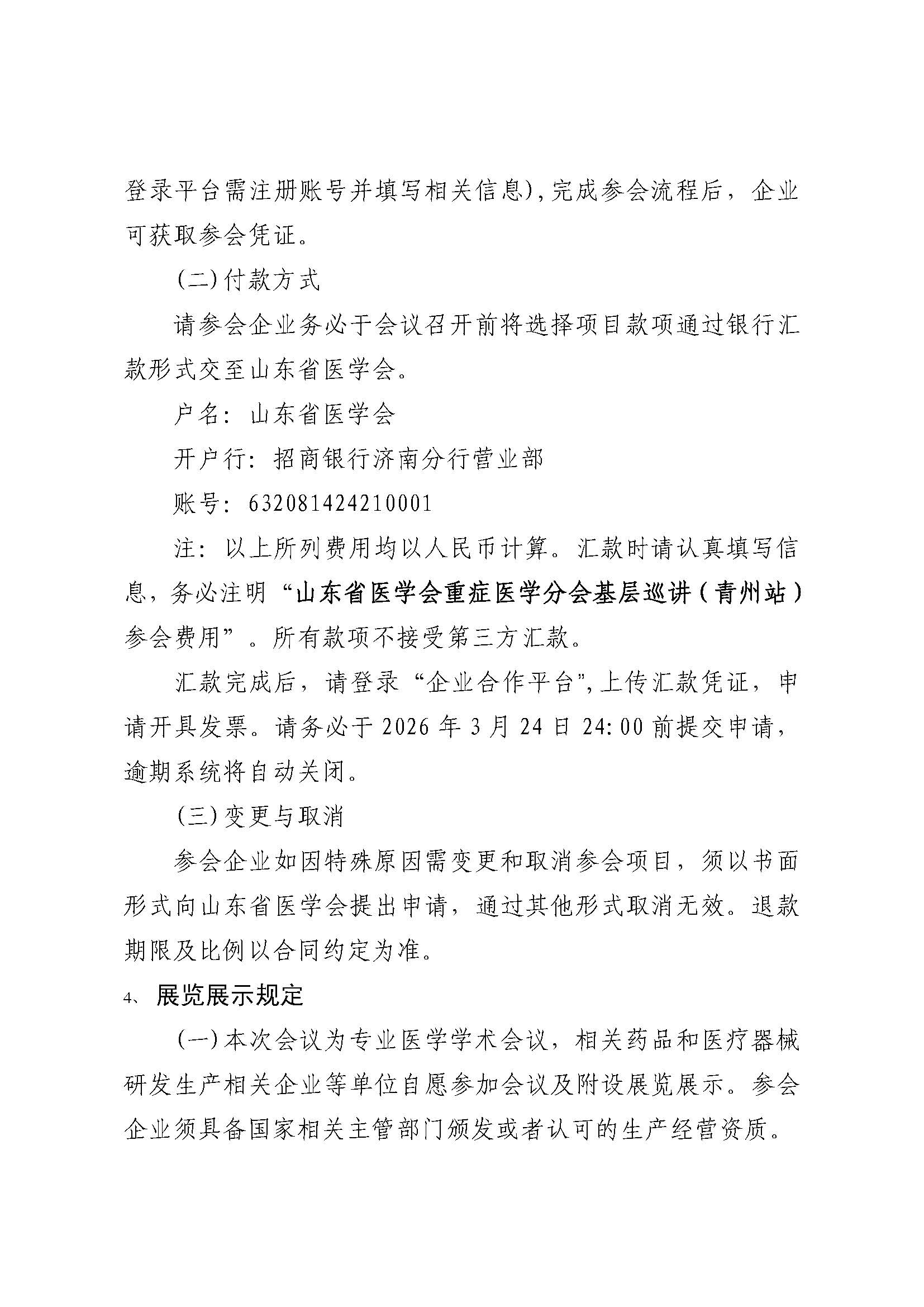 “振兴号”基层直通车(2026第12期)山东省医学会重症医学分会基层巡讲(青州站)企业参会通知