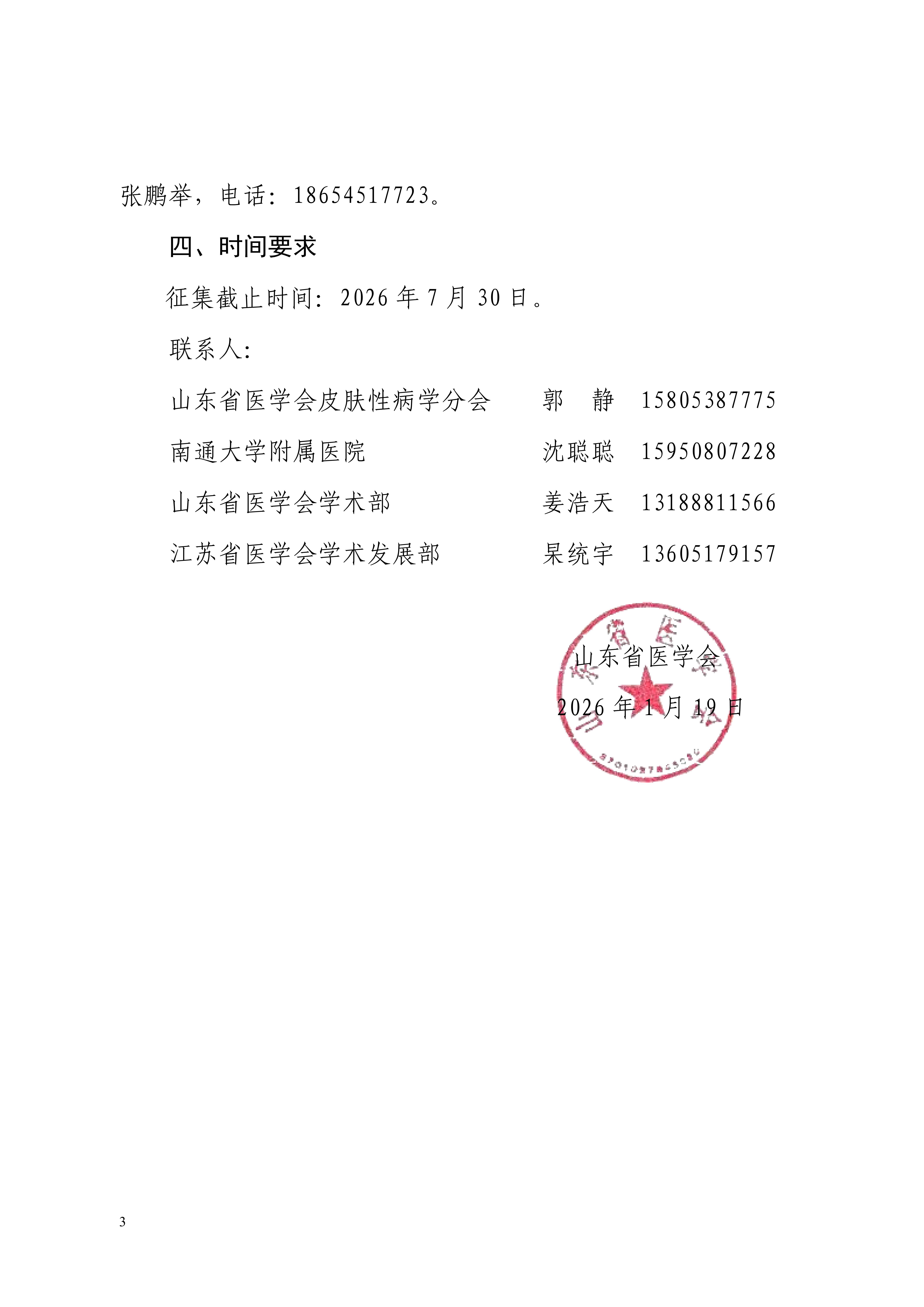 关于第十六届鲁苏皮肤性病学学术年会暨山东省医学会第二十八次皮肤性病学学术会议征文的通知