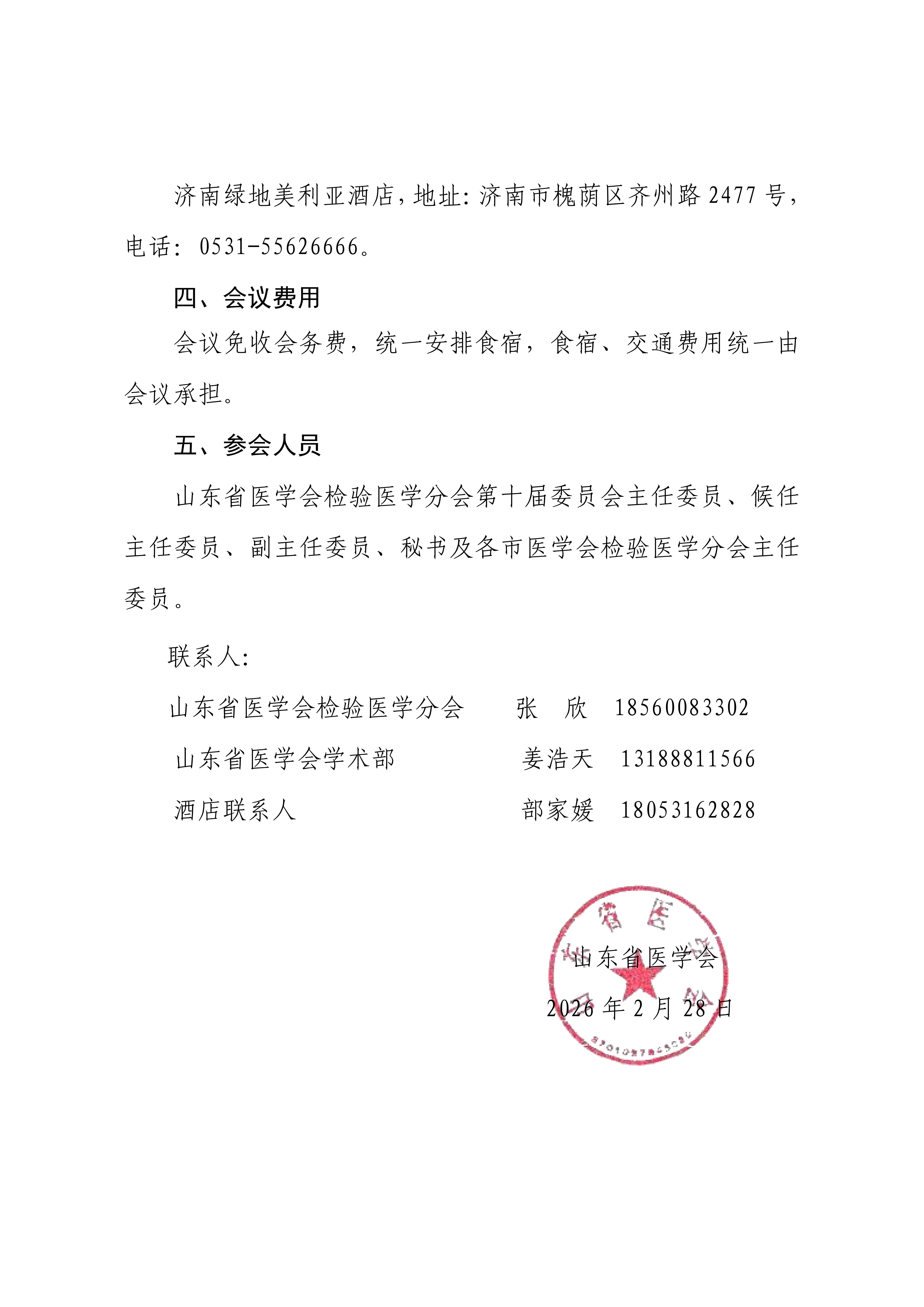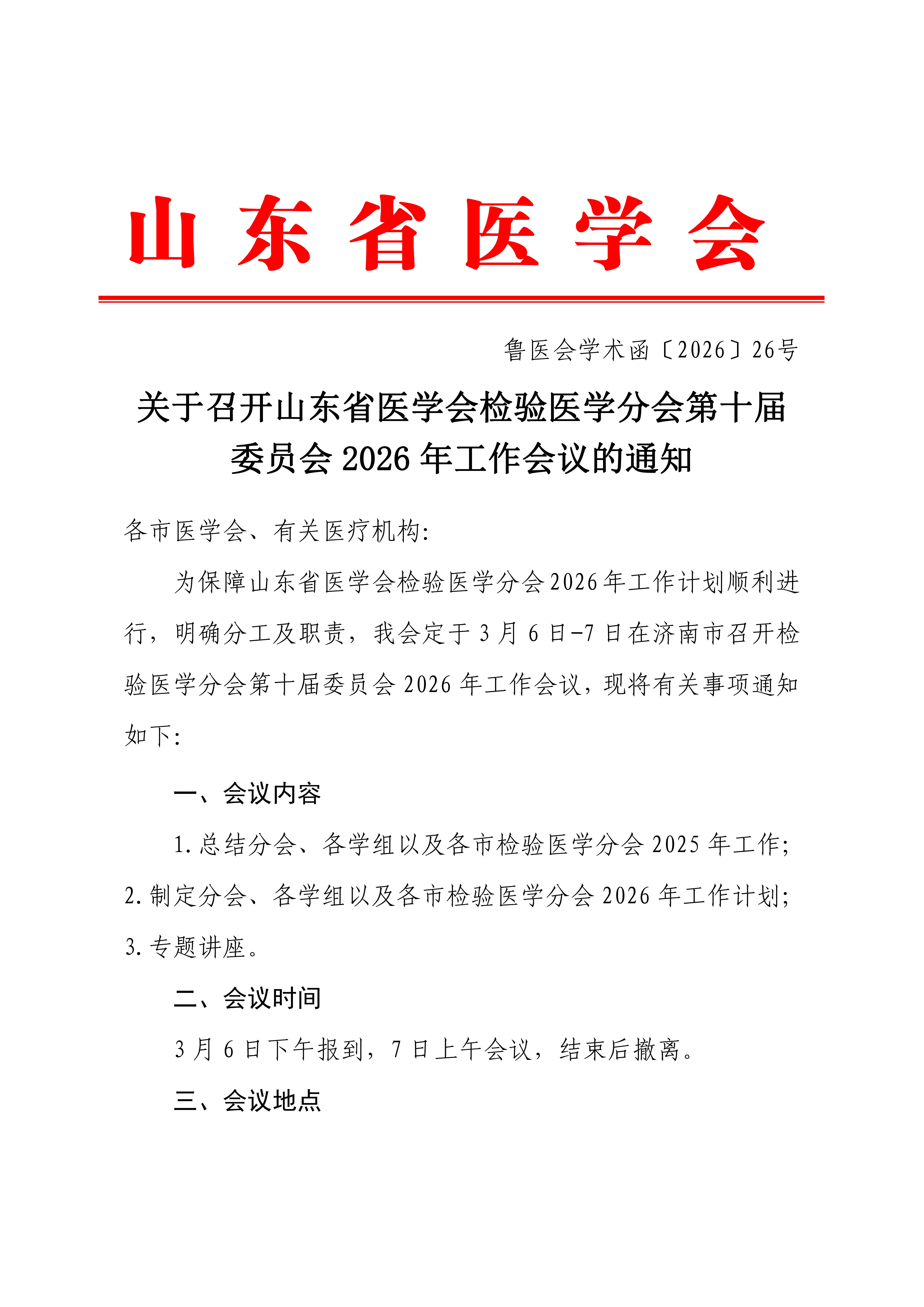 关于召开山东省医学会检验医学分会第十届委员会2026年工作会议的通知
