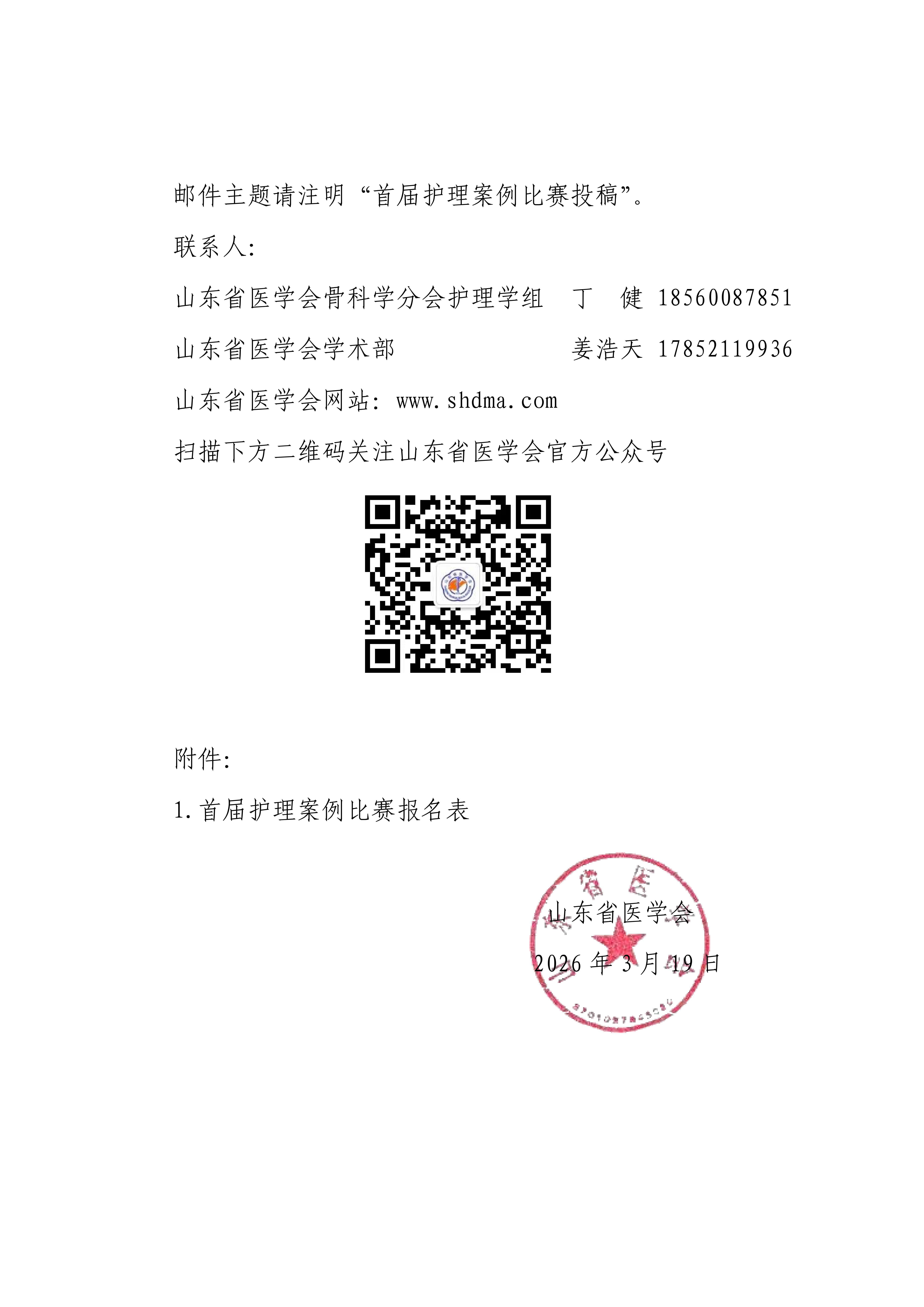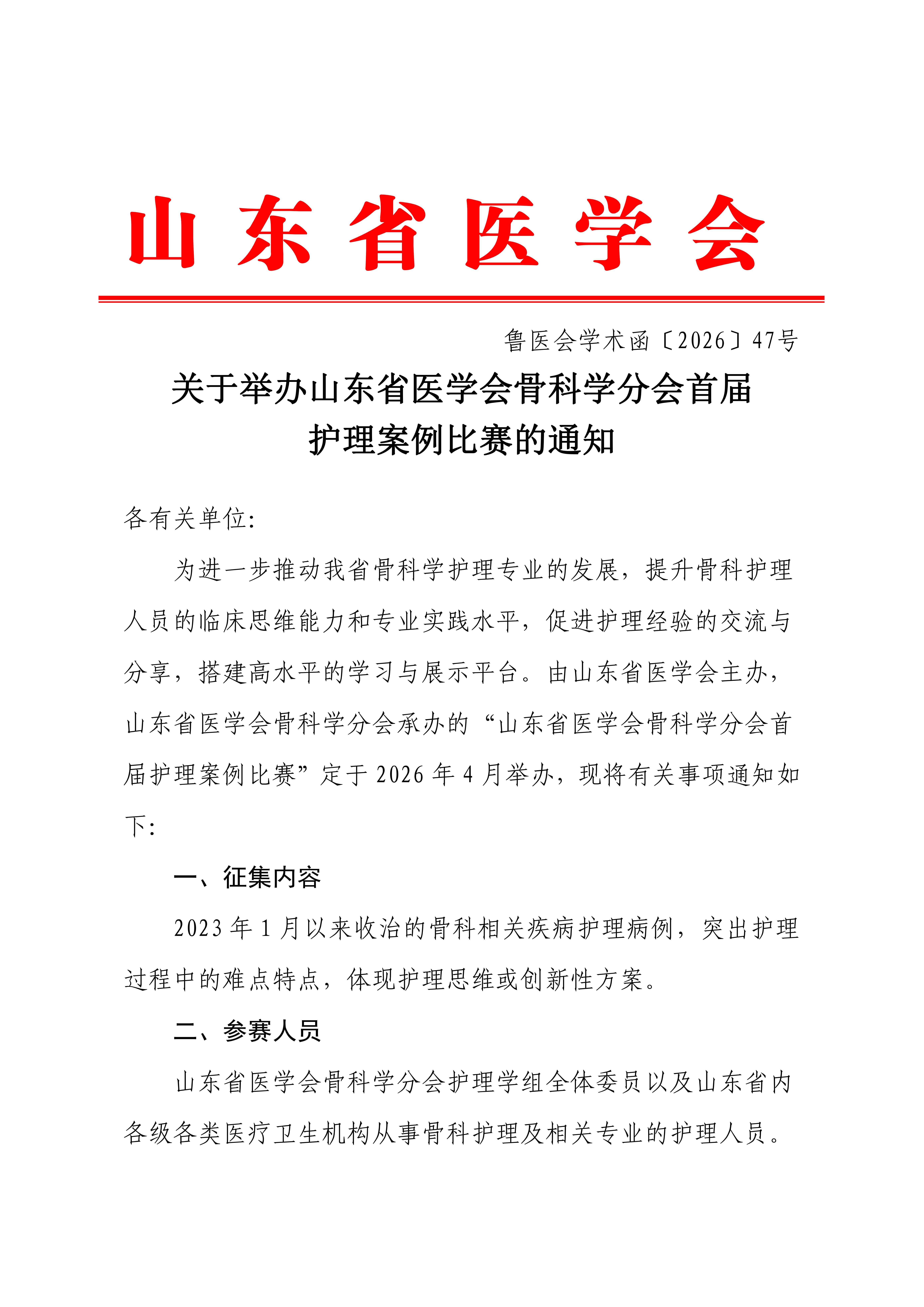 关于举办山东省医学会骨科学分会首届护理案例比赛的通知