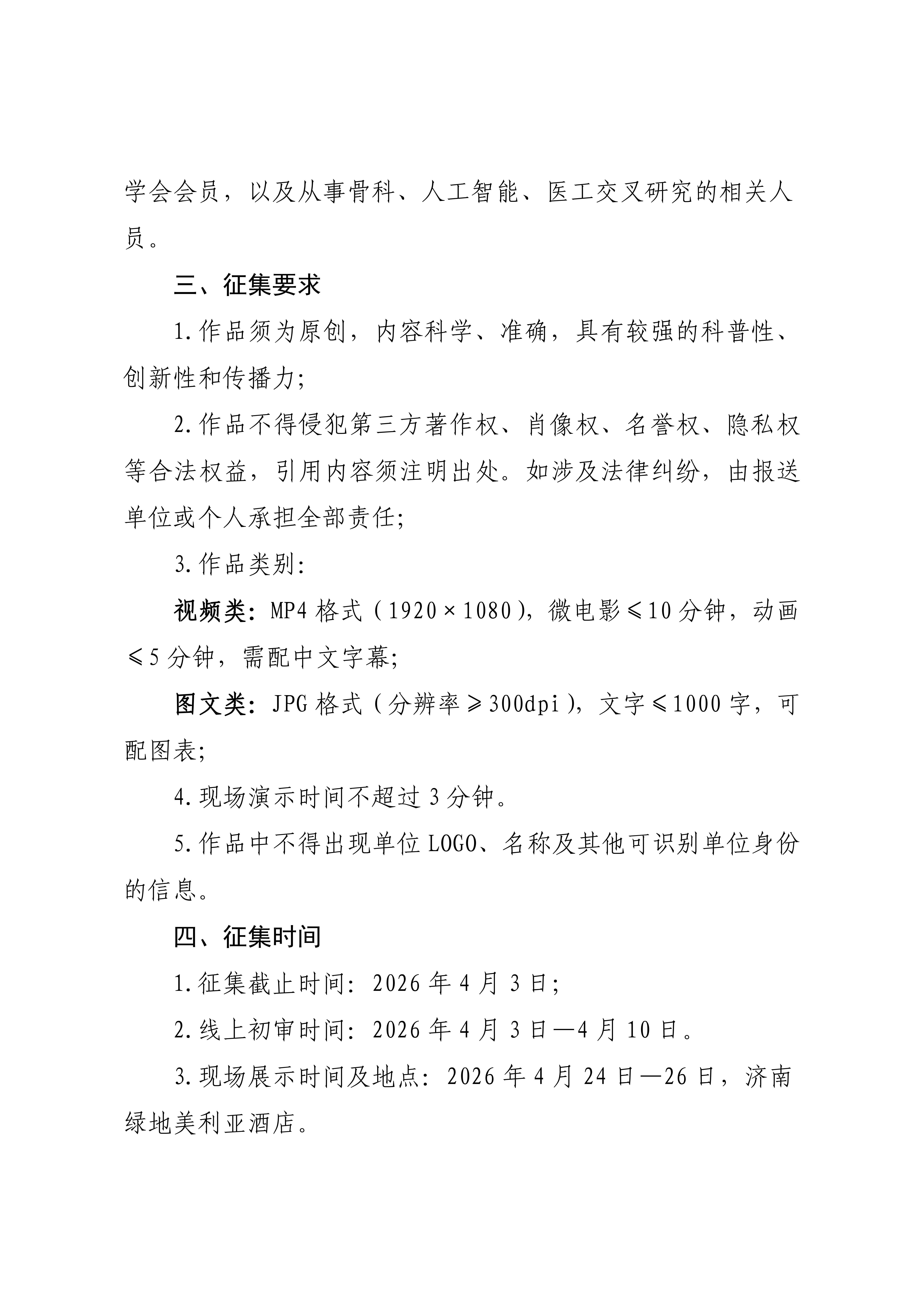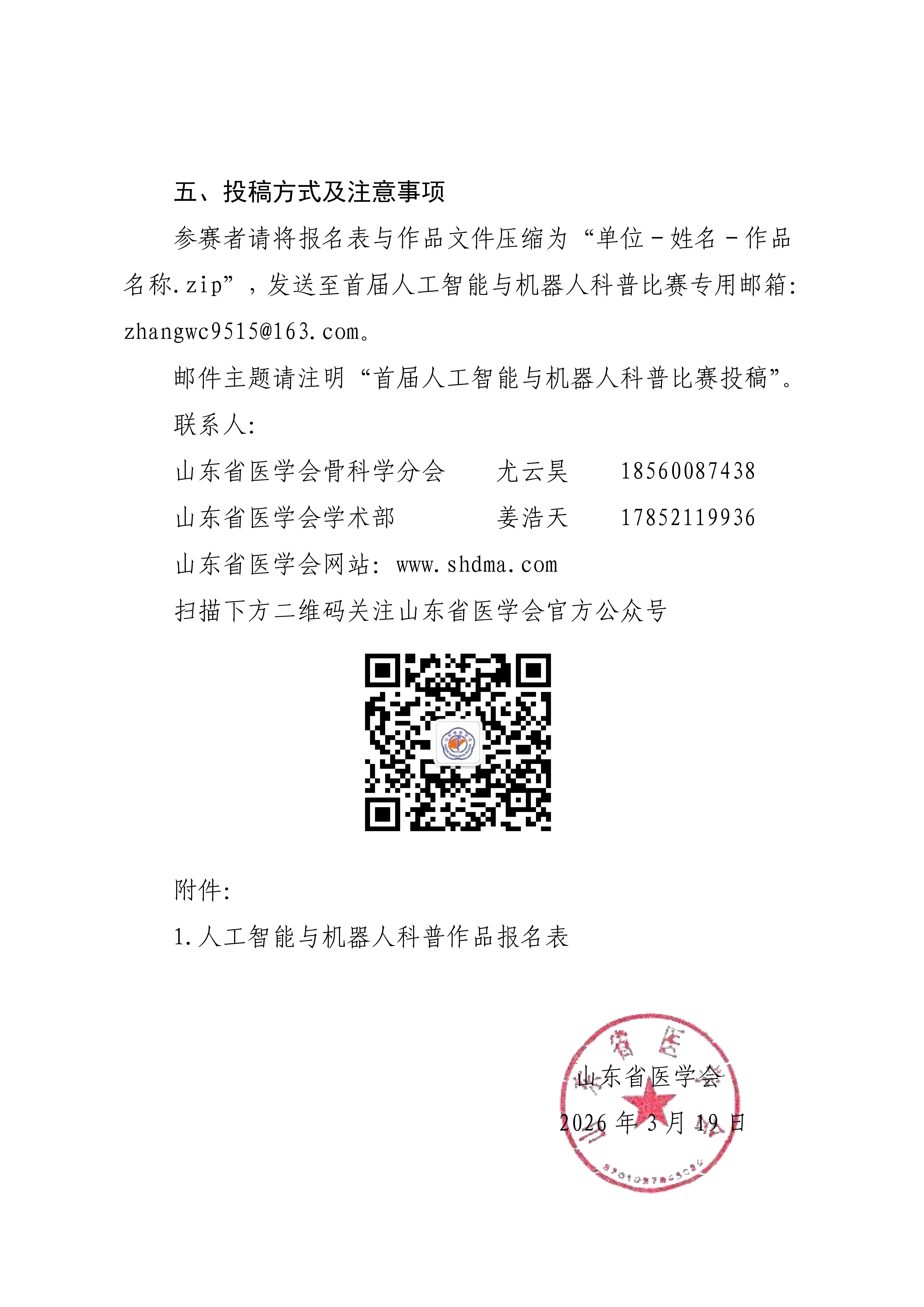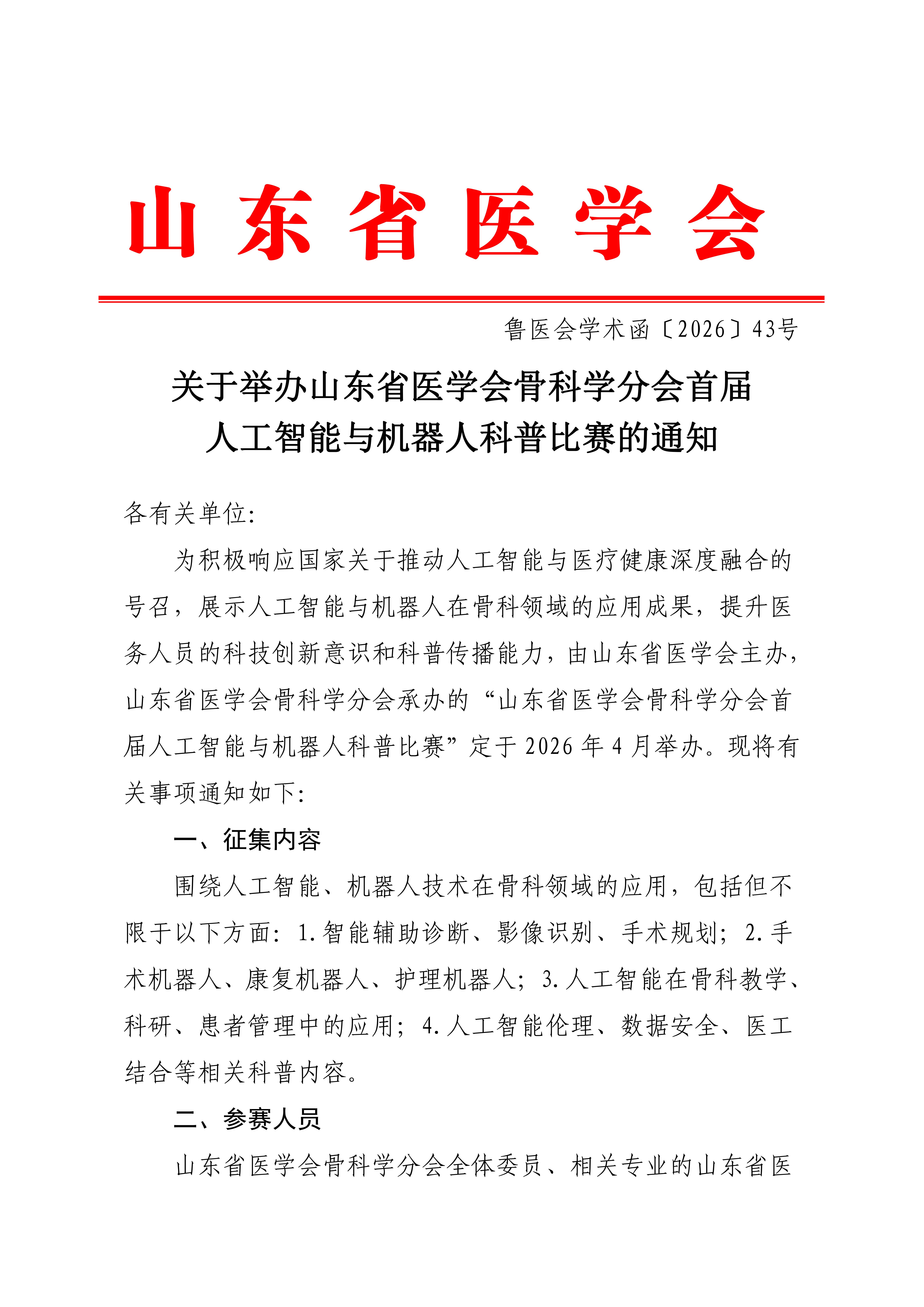 关于举办山东省医学会骨科学分会首届人工智能与机器人科普比赛的通知