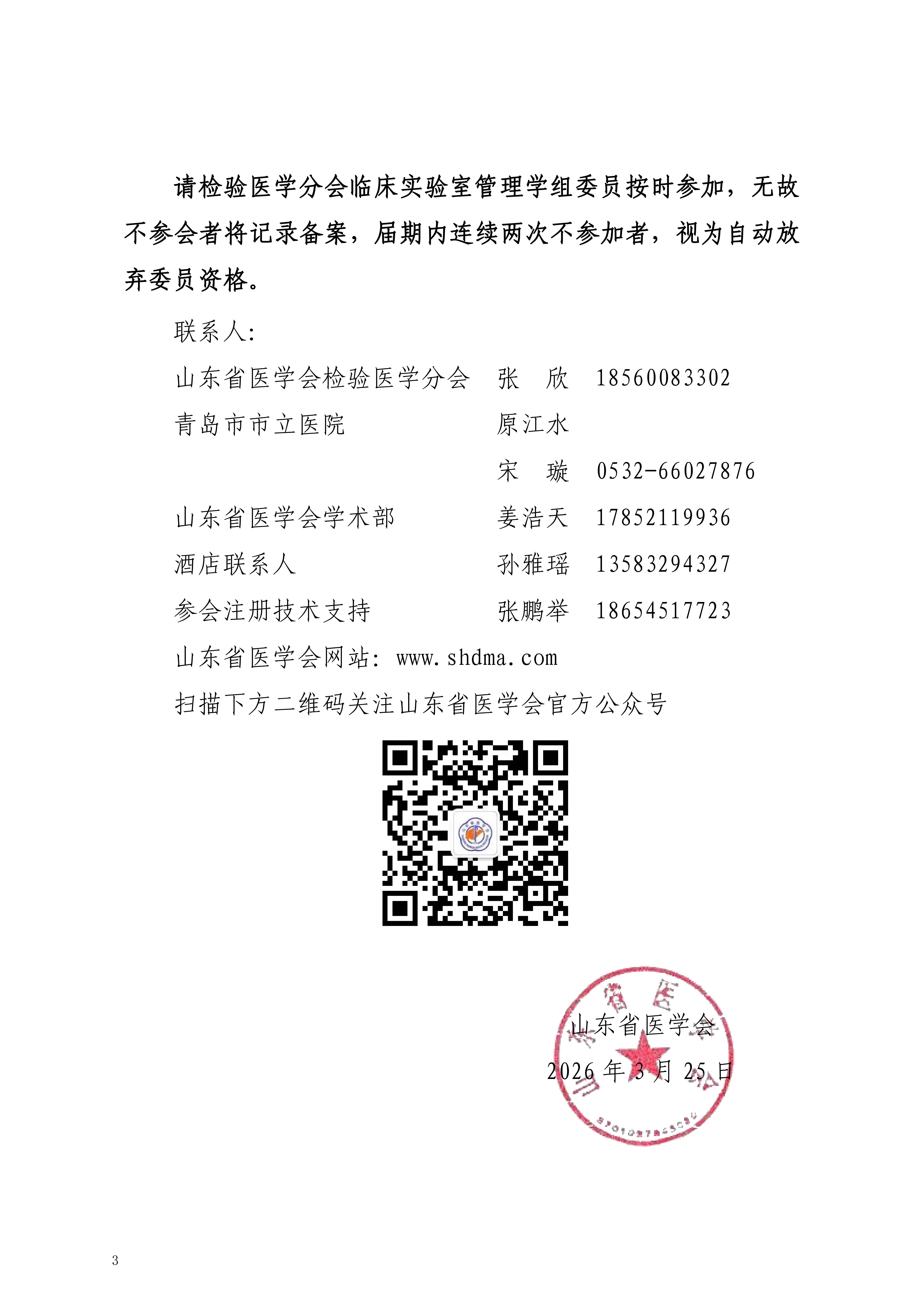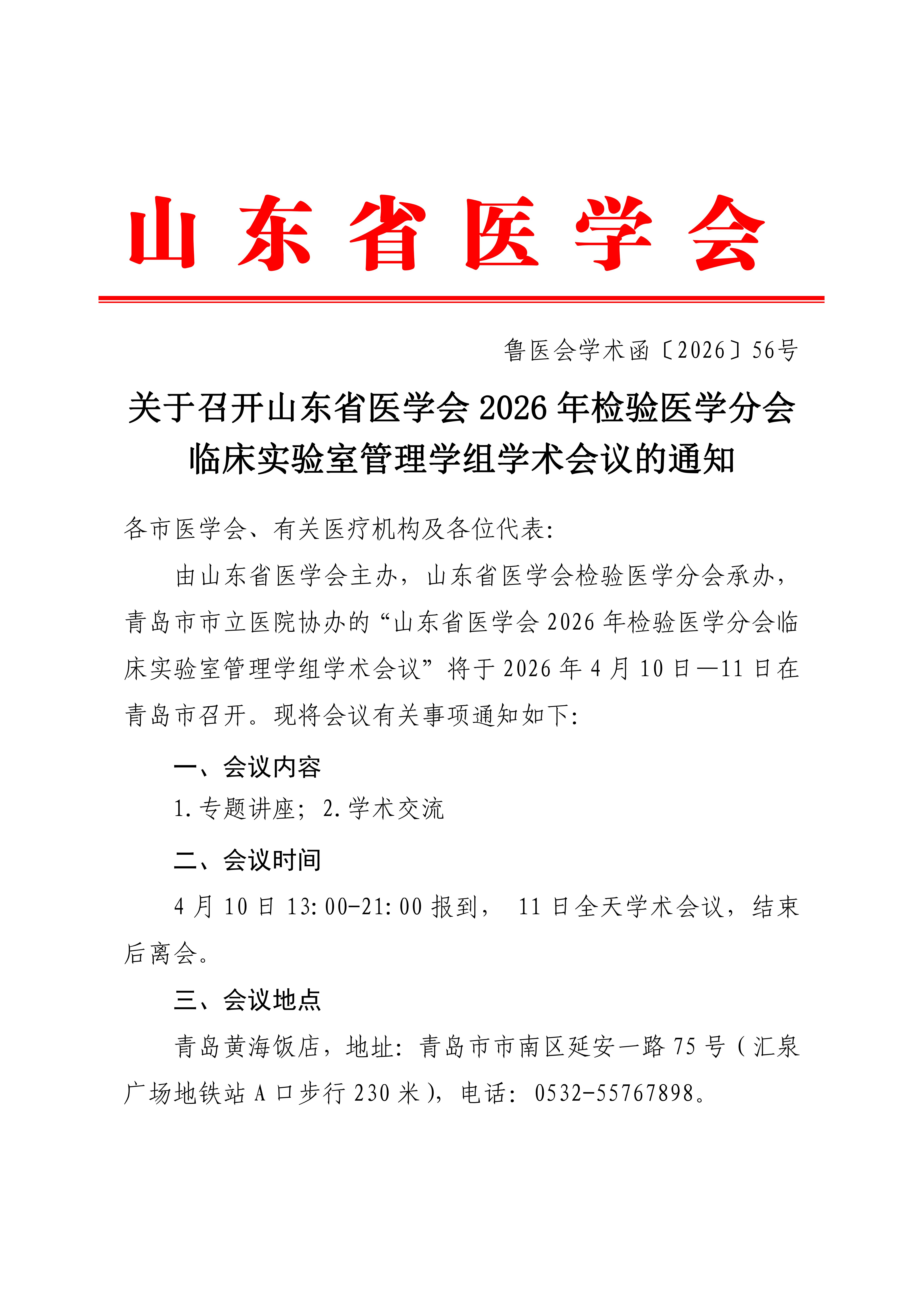 山东省医学会2026年检验医学分会临床实验室管理学组学术会议