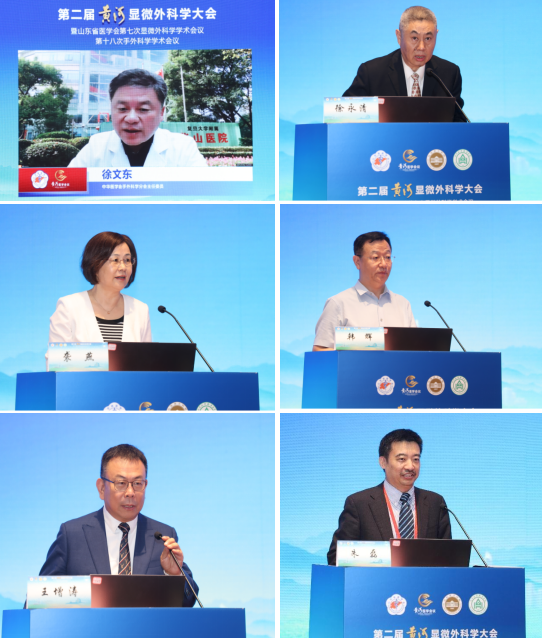 中华医学会手外科学分会主任委员徐文东线上致辞,中华医学会显微外科学分会主任委员徐永清,山东省人民政府参事、山东省医学会会长袭燕,山东大学齐鲁医院副院长韩辉,山东省医学会显微外科学分会前任主任委员、手外科学分会主任委员、山东第一医科大学附属省立医院王增涛分别致辞。山东省医学会显微外科学分会主任委员、山东大学齐鲁医院手足外科主任朱磊主持开幕式。
